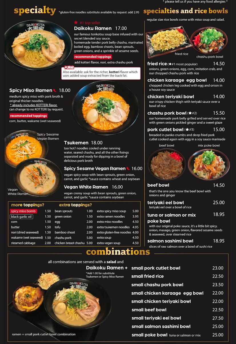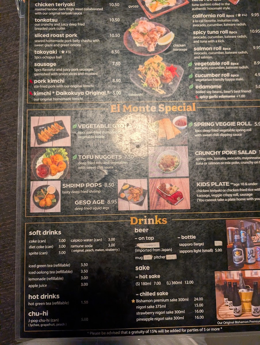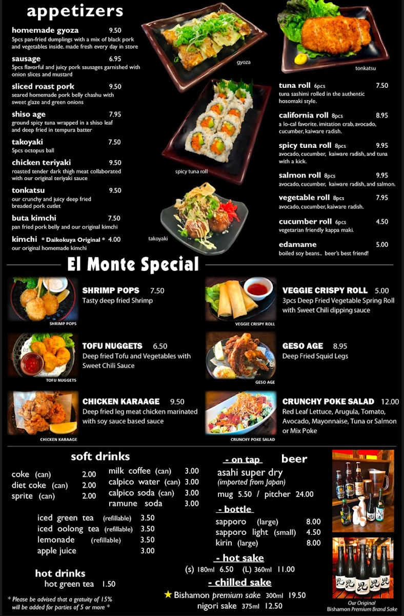 If you're in the mood for authentic Japanese cuisine, Daikokuya El Monte Menu offers an exceptional dining experience that brings the flavors of Japan right to your table. Located at 9911 Garvey Ave in El Monte, CA, this cozy spot is perfect for both casual dinners and special occasions. The menu boasts a variety of dishes, from comforting ramen bowls to fresh sushi and tantalizing appetizers, each made with the finest ingredients. Whether you're craving a rich, savory tonkotsu broth or something lighter like the refreshing sashimi, Daikokuya has something to satisfy every palate. The warm, welcoming atmosphere makes it an ideal place to unwind and enjoy great food with friends and family. Don't forget to check out their signature dishes that have earned the restaurant a loyal following-each bite is a delightful reminder of why this place is so special.